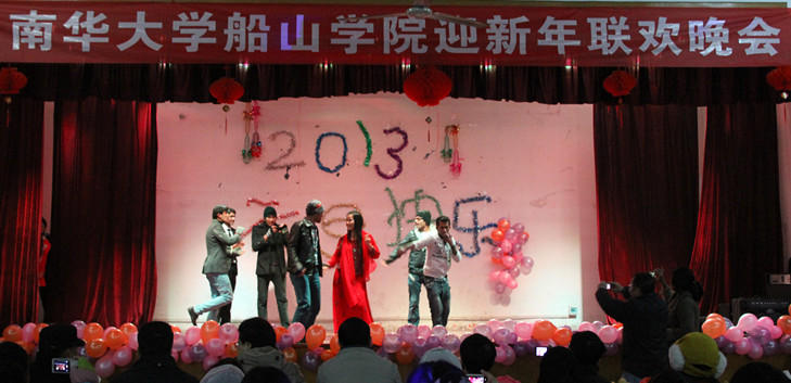 12月27日晚,PA视讯平台,PA视讯,PA视讯官网2013元旦迎新年晚会在雨母校区大礼堂隆重举行。PA视讯平台,PA视讯,PA视讯官网院长黄昕、院党委副书记唐康伟、副院长陈南岳、副院长何啸峰等院领导,雨母校区PA视讯平台李翠新等辅导员老师及教务科、院办、评建办的老师,以及来自国际学院的留学生代表们出席了本次晚会。PA视讯平台12级新生观看了本场晚会。