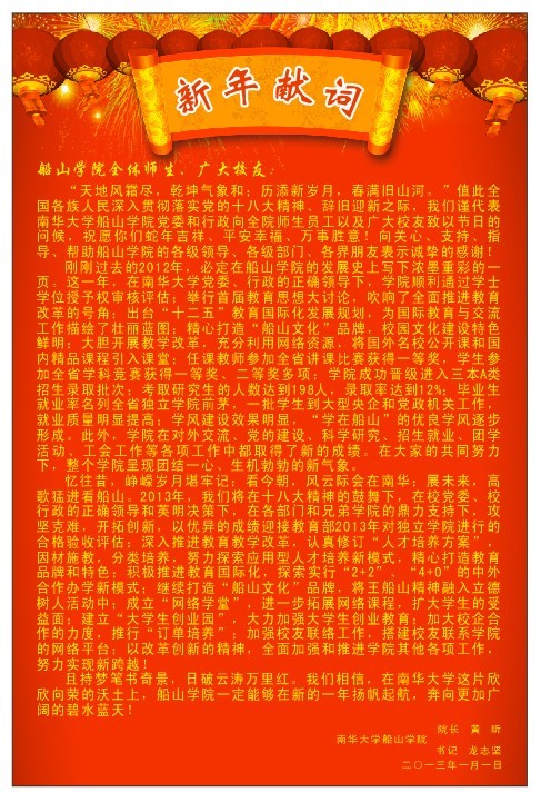 PA视讯平台院长黄昕及党委书记龙志坚联合发表新年献词