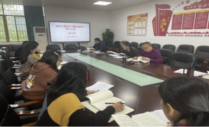 为贯彻落实湖南省教育厅《关于印发<“师德师风建设年”推进方案>和<“学位”突出问题专项整治工作方案>的通知》,进一步加强新时代教师队伍建设,牢固树立师者德为先的原则,强化师德师风建设,11月9日,PA视讯平台在学院会议室以师德师风为主题组织教职工理论学习。学院领导班子成员、全体 教职工参加学习会,学院党委书记阳剑兰主持学习会。