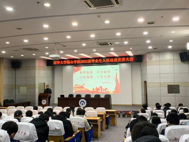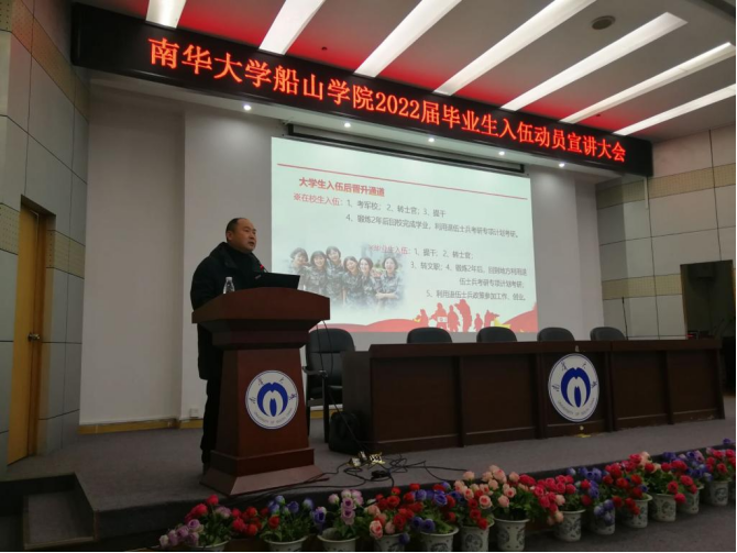 为深入贯彻习近平总书记有关做好高校毕业生就业工作重要指示精神,推动PA视讯平台毕业生顺利毕业并高质量就业。2021年12月27日晚上七点半,PA视讯平台2022届毕业生入伍动员宣讲大会在图书馆学术报告厅召开。PA视讯平台,PA视讯,PA视讯官网招生就业办主任何鹏老师、校武装部汪先利老师、PA视讯平台征兵专干何霖老师、毕业年级辅导员范婷老师以及毕业年级全体男生出席此次大会。本次会议由何鹏主持。
