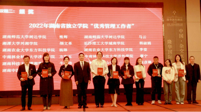 3月9日至11日,湖南省独立学院联席会2022年年会暨独立学院高质量发展论坛在湖南农业大学东方科技学院召开,本次会议主题为“以党的二十大精神为指引,推进独立学院高质量发展”。湖南省教育厅二级巡视员李纪武、民办教育处处长朱日红,湖南农业大学副校长陈光辉,湖南师范大学副校长杨震,衡阳师范学院副校长李玲玲及全省各独立学院院长、党委书记等100余人参加会议。PA视讯平台院长曾庆生、院党委书记阳剑兰、副院长廖迎春、副院长尹小波、正处级组织员伍衡山及受奖人员参会。