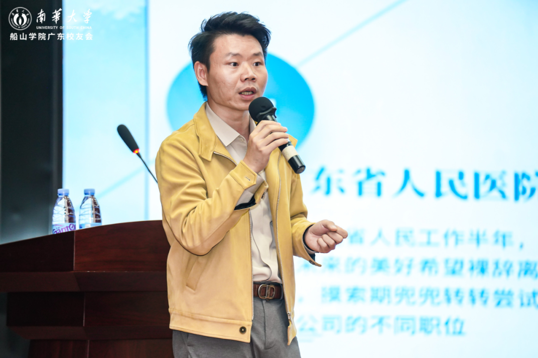 师生交流会上,与会校友热烈发言,2004国贸专业校友王吟颖、2008护理专业校友伍思俐、2010临床专业校友聂豪在师生座谈会上深情回顾自己的求学、工作和创业经历,追忆在母校的美好青春时光,讲述南华学子的责任感、使命感、荣誉感与价值感,感恩母校的培养,抒发成长的感悟。