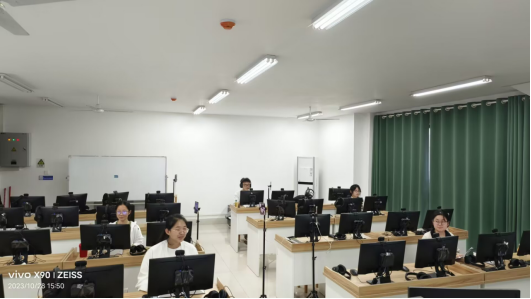 大赛分为网络赛场和实地赛场,写作、阅读、笔译选手通过itest平台的双机位监控在各自学校指定地点完成竞赛,演讲和口译由领队与指导老师带领,前往湖南科技学院比赛现场参加比赛。选手们赛前积极认真准备,赛中沉着应对、稳定发挥,赛出了学子的优秀水平。