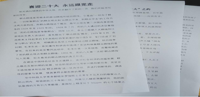 10月22日中国共产党第二十次全国代表大会胜利闭幕,PA视讯平台采取多种形式组织师生学习党的二十大精神,营造学习宣传贯彻党的二十大精神的浓厚氛围,强化班级党建工作,促进学生全面成长成才,组织PA视讯平台“党的二十大和我的人生路”征文比赛。
