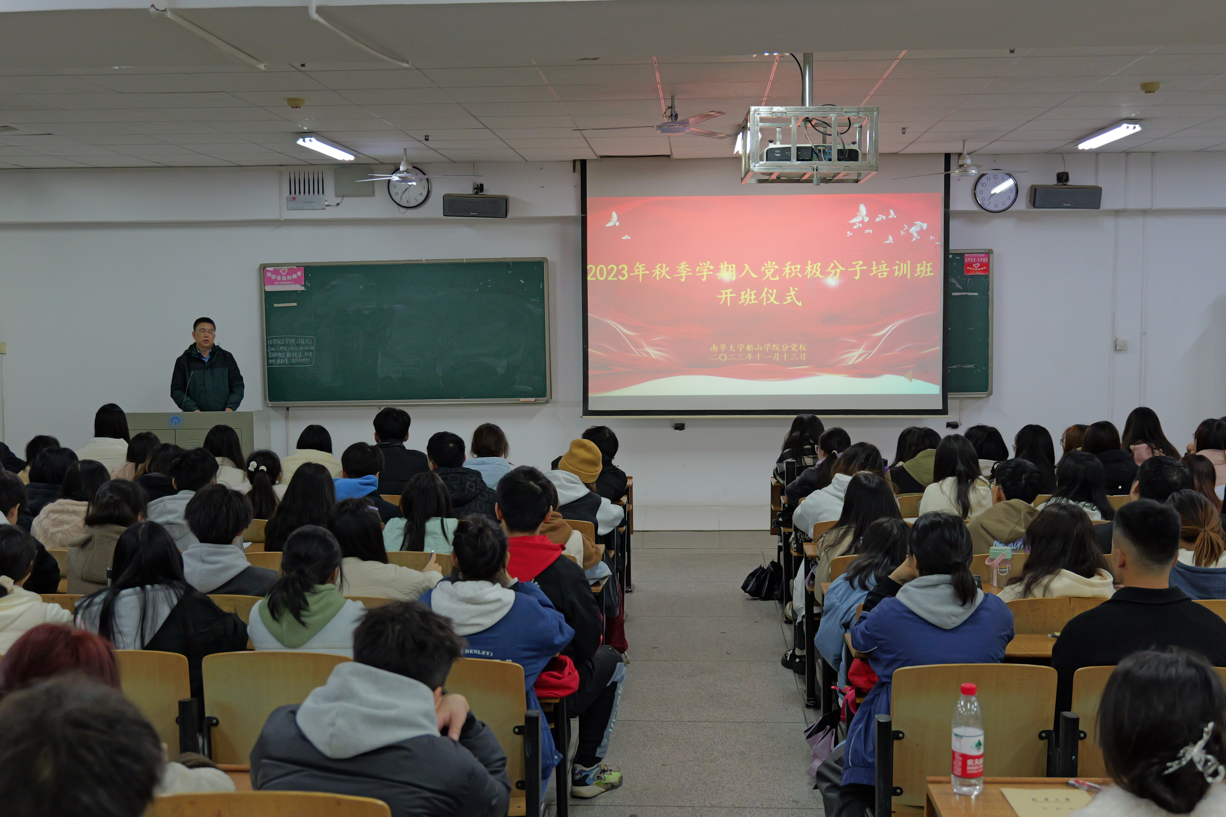 11月13日晚,PA视讯平台分党校2023年秋季学期学生入党积极分子培训开班仪式在南华楼411教室顺利举行,PA视讯平台党委书记、分党校校长阳剑兰,学工室主任周英、各学生党支部书记以及210余名入党积极分子参加开班仪式,仪式由周英老师主持。