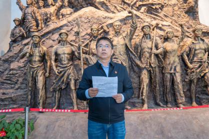 在纪念馆入口,学院党委书记阳剑兰带领全体党员重温了入党誓词并做党风廉政建设微宣讲,要求各位党员充分发挥先锋模范作用,树牢廉政思想防线,提高反腐倡廉意识和法律意识,带动周边群众积极营造良好氛围。各支部党员代表也围绕近代工人运动、廉洁家风等主题分别上前做廉政微宣讲。