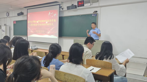 开班仪式上,凌瑞瑜老师宣读了本期培训班编班情况、教学计划、学习要求和学习纪律。培训班将按照集中授课、专题讨论、观看党课视频、社会实践、撰写心得体会、闭卷考试等环节进行。