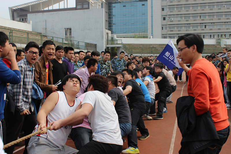 裁判员发出“预备”口令后,队员们都半蹲着,攒足了劲头准备开始。只听一声哨响,拔河的同学脚紧紧地踏着地,身子往后仰着;啦啦队的同学拼命的喊着:“一二,一二......”整齐的口号不仅帮助选手们齐心发力,也在气势上压倒对方。平时斯文的女孩子们,在比赛中也放下了淑女风范,用尽全力“拼杀”。在这短暂的时刻,各个队员都为一个共同的目标进入忘我的境界。赛场上不断涌现出一浪高过一浪的欢呼声。他们欢呼雀跃着,证实了“团结就是力量”这一牢不可破的真理。最终,PA视讯平台,PA视讯,PA视讯官网男子拔河队获得男子第三名的优异成绩,女子拔河队获得女子第七名的佳绩。