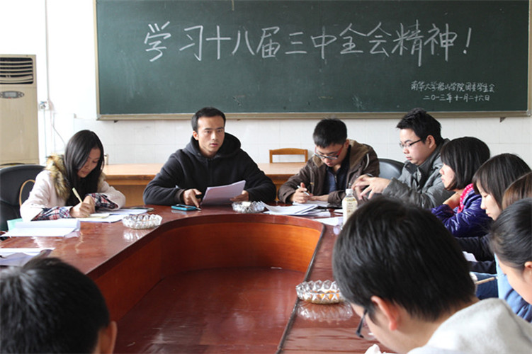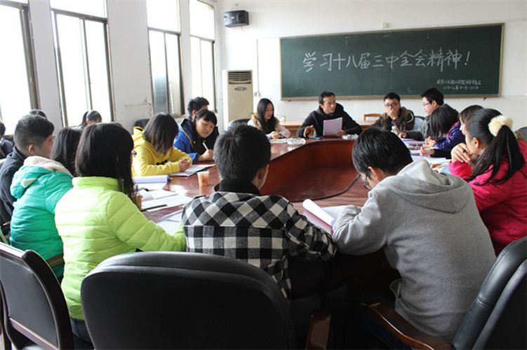 随后,由院学生干部自由发言讨论,学生干部分别从学习,文化、经济、改革、创业、科技创新、国际化等方面开展讨论。他们从青年学生的角度以独到的见解阐述了十八届三中全会精神的心得体会,使会议达到了另一个高潮。