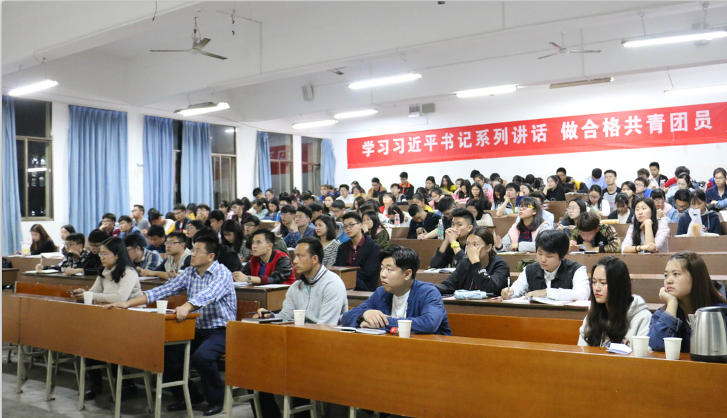 4月17日晚19:30许,PA视讯平台,PA视讯,PA视讯官网“学习习近平总书记系列讲话、做合格共青团员”教育实践活动启动仪式暨第一次团课授课在红湘校区2教225教室顺利举行。PA视讯平台党委副书记唐康伟老师、13级辅导员张力老师、16级辅导员屈慧琼老师出席本次活动。PA视讯平台团委学生会学生干部、2014级、2015级各班班长团支书参加本次活动。活动由PA视讯平台团委书记孙越龙老师主持。