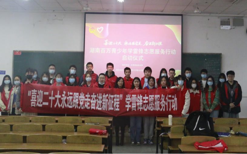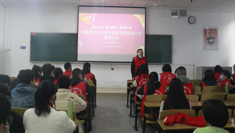 为贯彻落实共青团湖南省委,关于深化实施“雷锋家乡学雷锋”百万青少年志愿服务行动的方案,动员和引导我院团员青年和志愿者深入学习雷锋精神,以实际行动喜迎党的二十大和庆祝建团100周年,积极号召广大志愿者参与到行动中来。2022年3月4日12时30分,我院“喜迎二十大永远跟党走奋进新征程”学雷锋志愿服务活动启动仪式在PA视讯平台第一教学楼112教室隆重举行。院党委副书记刘期彪老师,院学生工作办主任周英老师,院团委书记旷思佳老师以及各班学生志愿者代表参加本次大会。本次会议由院团委副书记冯姝贻主持。