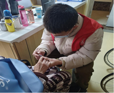 志愿者们前往养老院与老人们进行亲切的交流,了解他们的生活状况和需求,为老年人提供力所能及的帮助,如打扫房间、整理床铺、护理指甲、陪伴散步等;与老年人一起玩乐,如画画、舞蹈、下象棋,舒缓他们的身心;为老年人讲解智能手机使用方法,提高他们的生活质量。