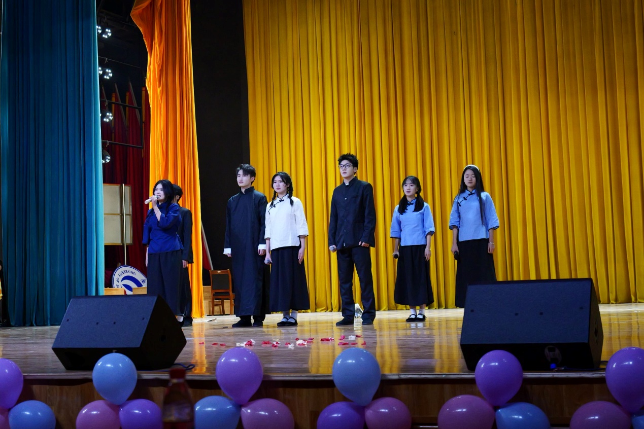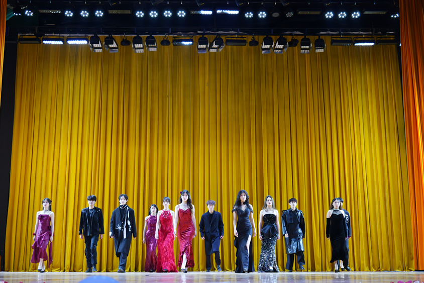 少年迎风而来,不染岁月纤尘。在这个舞台上,红绸与黑墨交织,渲染出了一副具有浓烈的色彩碰撞的画卷。模特们迈着自信的步伐,将船山学子的青春气息展现的淋漓尽致