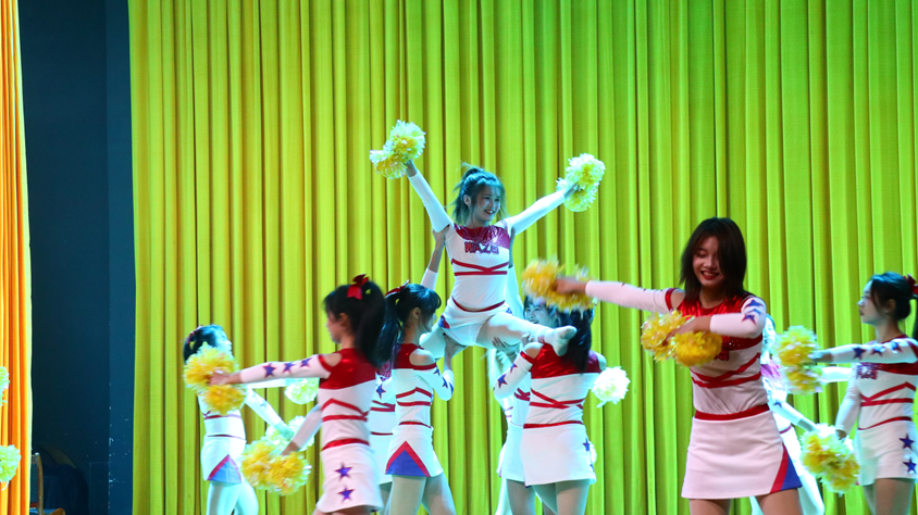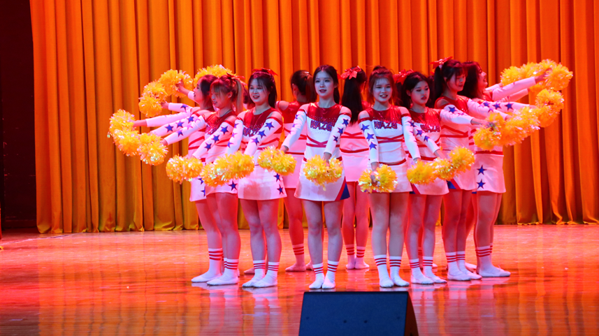 青春启航,乐舞飞扬。激情澎湃,斗志昂扬。激昂的音乐,闪亮的花球,一段啦啦操,舞出了热情,跳出了风采,将晚会气氛"炸”了起来。