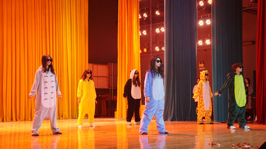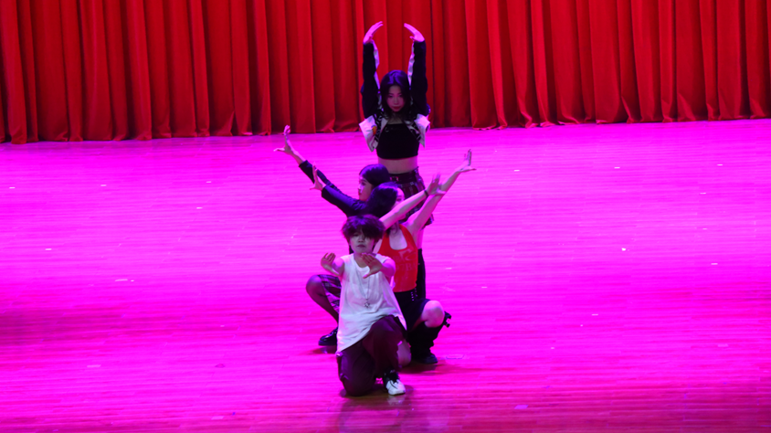 观众们“哇”的一声!舞者们换去卡通服装以另一种风格出现。她们带来k-pop舞蹈,动作多样,包括旋转、跳跃……还配合手势面部表情来表达歌曲的情感和氛围。