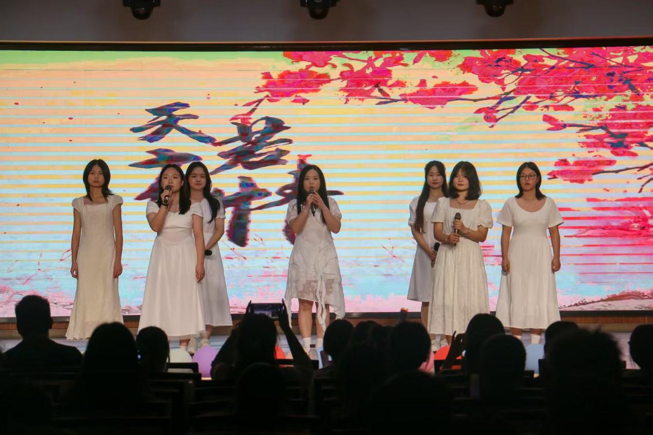 晚会融合乐队激情演奏、潮流舞蹈串烧、原创小品、沉浸式合唱等多元艺术形式,将思想引领与艺术审美深度融合。大艺团合唱队以激昂的《命运》点燃全场,传递奋斗者精神;团委综合事务部的独唱《最初的记忆》以细腻情感引发共鸣;穿插其中的“听歌识曲”互动环节,更让现场变成青春欢歌的海洋。此外,大艺团礼仪队的优雅走秀、舞蹈队的灵动演绎、曲艺队的幽默小品,充分彰显了学院美育的丰硕成果与学生社团的蓬勃活力。