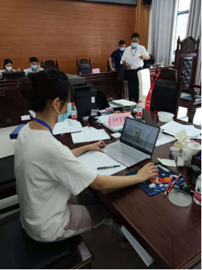 图5 潘海虹同学负责接收疾控对确诊患者的流调数据                图6 宁韬瑜同学做核酸采样