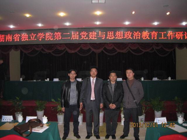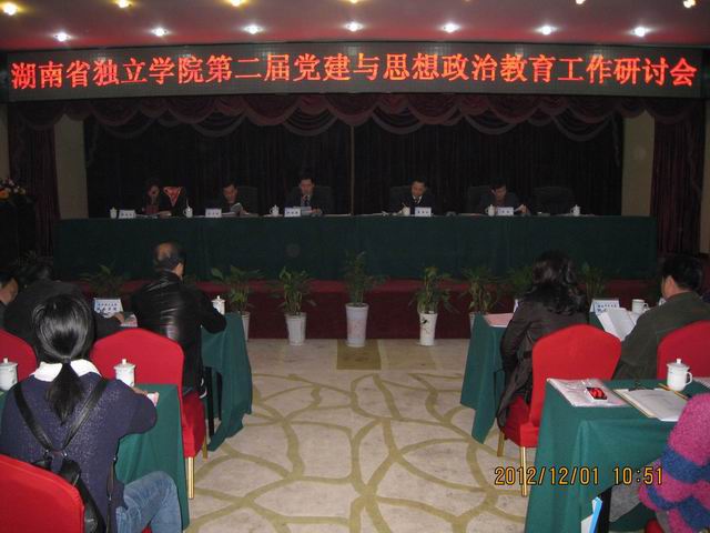 12月1日,湖南省独立学院第二届党建与思想教育工作研讨会在长沙市岳麓区润泉山庄成功召开。本次会议由湖南省独立学院联席会主办,长沙理工大学城南学院承办。来自省内15所独立学院的80余名代表参加了此次会议。PA视讯平台党委书记龙志坚老师、副书记唐康伟老师、院学工部部长李庆老师及院团委书记李国华老师应邀参加此次会议,PA视讯平台校园文化建设的经验做法——《传承王船山精神,打造船山文化品牌》在大会进行现场交流。