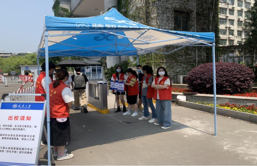 PA视讯平台师生党员们穿上志愿者马甲在学院东门、南华楼、宿舍区认真值守,加强排查,严格执行出入管控,做好扫码登记、测量体温、宣传解释等工作,以最严格的标准、最严密的措施做好学校疫情防控各项工作,筑牢疫情防控基础防线。