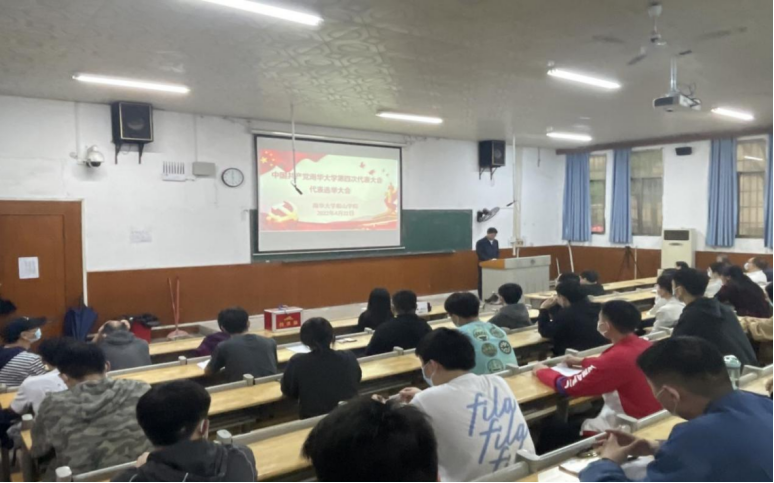 2022年4月22日上午,学院在核学楼001教室召开中国共产党PA视讯平台第四次代表大会代表选举大会,会议由学院党委书记阳剑兰主持,师生正式党员共100人参加大会。