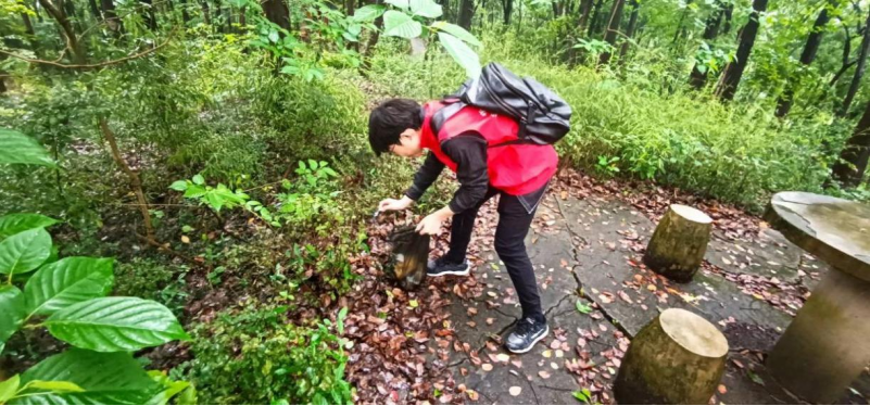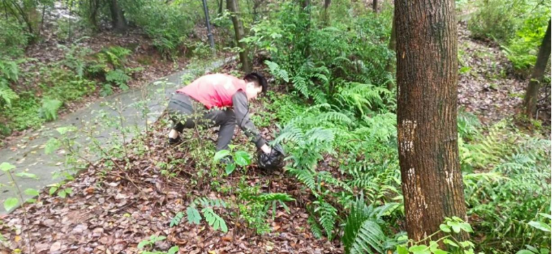 在山路旁的一些垃圾难以打扫,有的党员同学积极主动上前捡起来并装入垃圾袋中。大家分头行动,对卧虎山区域进行了全面的清理,充分发挥了不怕苦、不怕累、不怕脏的精神。