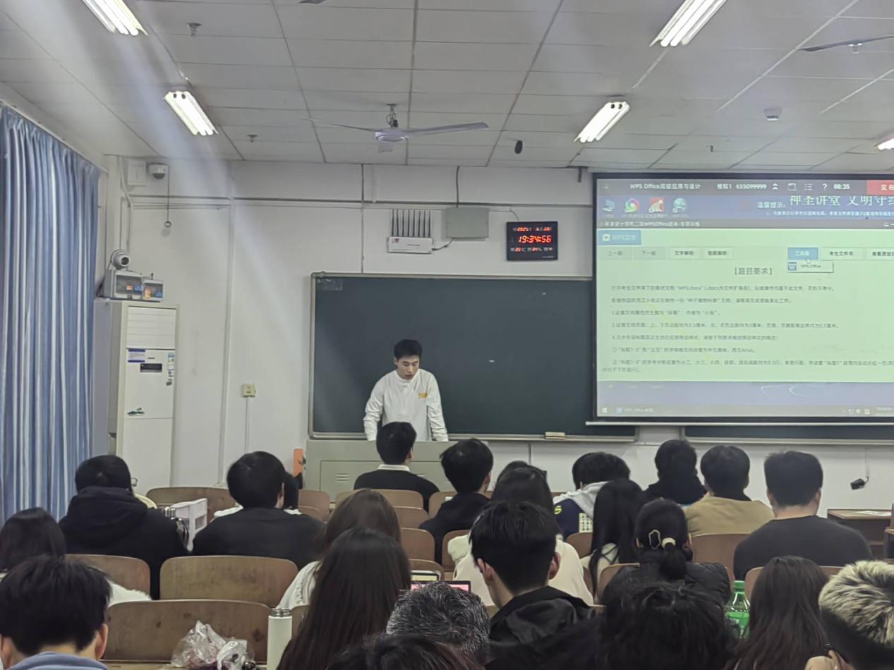 作为学院选拔的朋辈“小老师”,魏福康同学结合自身高分通过计算机二级考试的经验,系统梳理了考试大纲的重点难点,从题型解析、操作题速成技巧到高效备考规划,逐层展开讲解。他特别针对Excel和ppt模块,通过现场操作演示和易错点分析,帮助同学们规避常见失分陷阱。“备考不仅要刷题,更要学会归纳高频考点和解题逻辑”,魏福康同学的实用建议赢得现场阵阵掌声。互动环节中,同学们踊跃提问,魏福康同学逐一解答,现场学习氛围热烈。