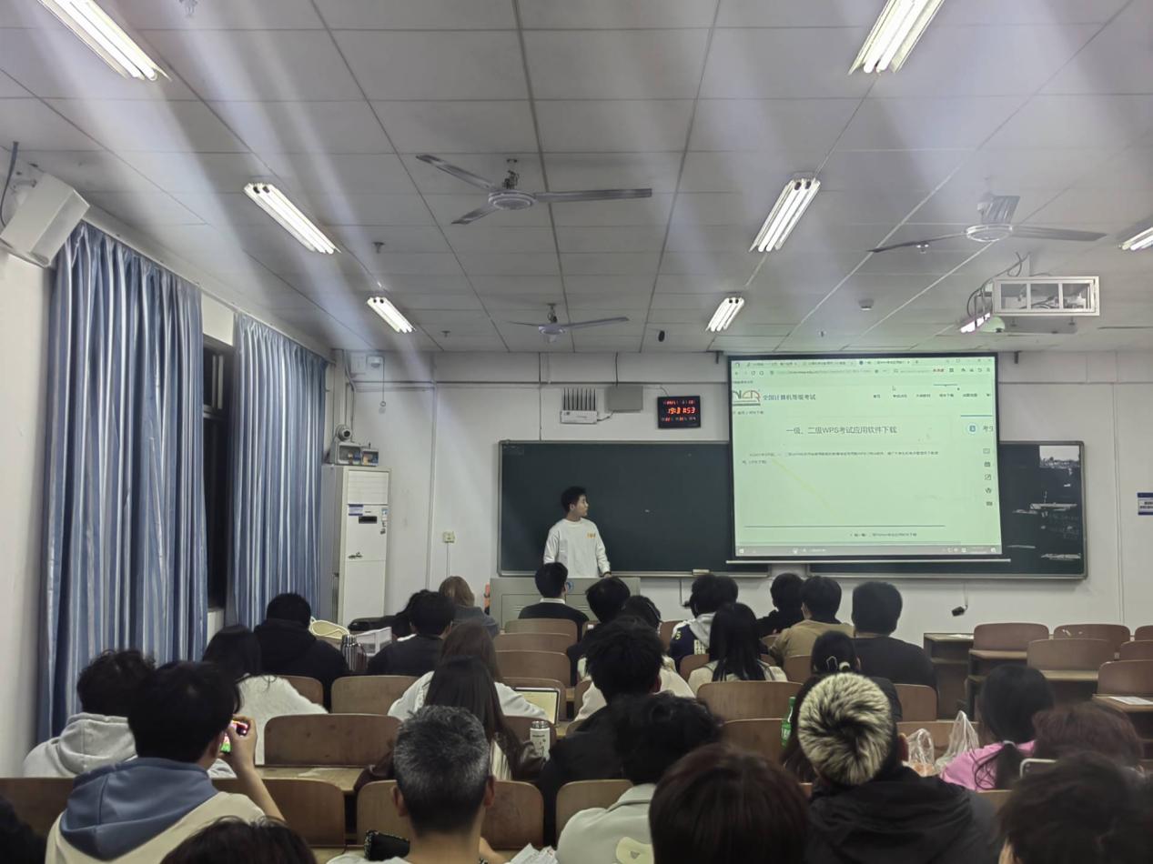 为深入落实学校“教育教学改革年”相关工作,大力加强学风建设,发挥优秀学子在帮扶学业困难同学中的作用,3月20日晚,PA视讯平台春季学期首期“勤学堂”学业帮扶活动在南华楼205室顺利开展。学院招募的23级软件工程专业优秀学生魏福康担任主讲人,为80余名来自不同专业的学生带来一场干货满满的《计算机二级备考技巧分享会》,以朋辈力量赋能学业成长,拉开本学期系列帮扶活动的序幕。